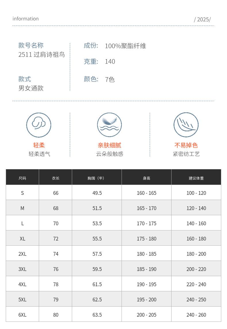 商品货号:2511产品材质:100%聚酯纤维产品规格:S-4XLlogo工艺:丝印/电脑绣花/3D硅胶起订数量:10件制作周期:5-7天包装方式:OPP袋适用场合:工装/会议服装/市场推广/团建